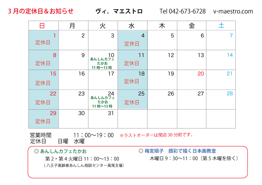 3月も、焙煎したてのコーヒーと手作りスイーツで